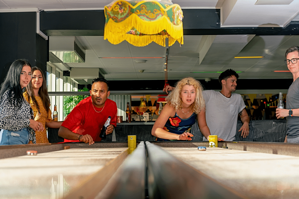 We're not your run-of-the-mill budget hotel. Step inside, and you'll uncover our terrace bar - home to what might just be one of Copenhagen's only «Casino-Hotel» courts and the city's largest shuffleboard centre. Bring your friends along for a game, and after some friendly competition, unwind in our hostel bar with a couple of cocktails.